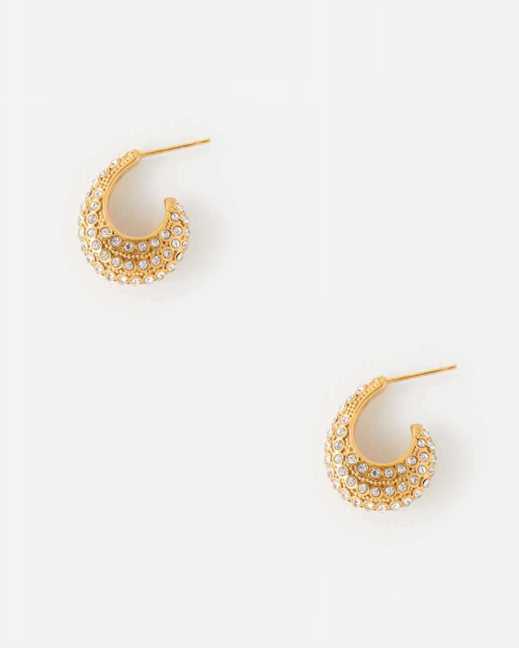 - Faux pearl or rhinestone small gold hoop