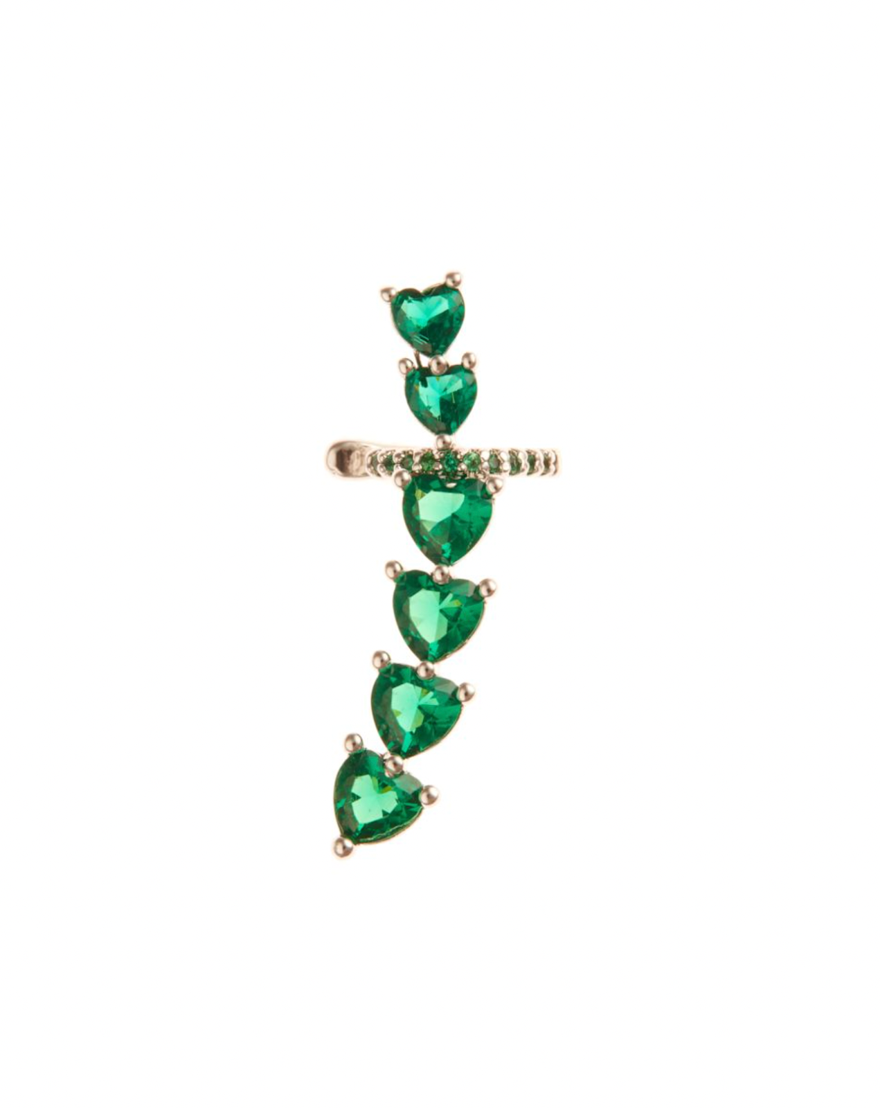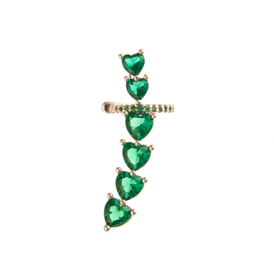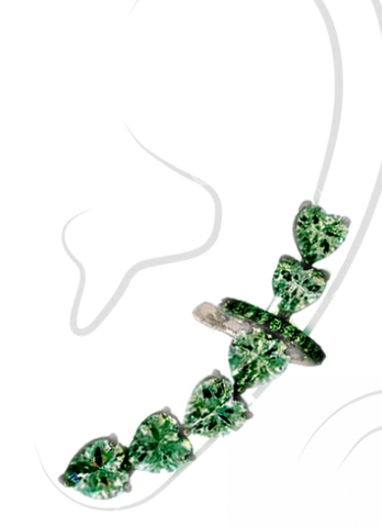 - Green gemstone floral crawler with post stud and ring arch for ear support