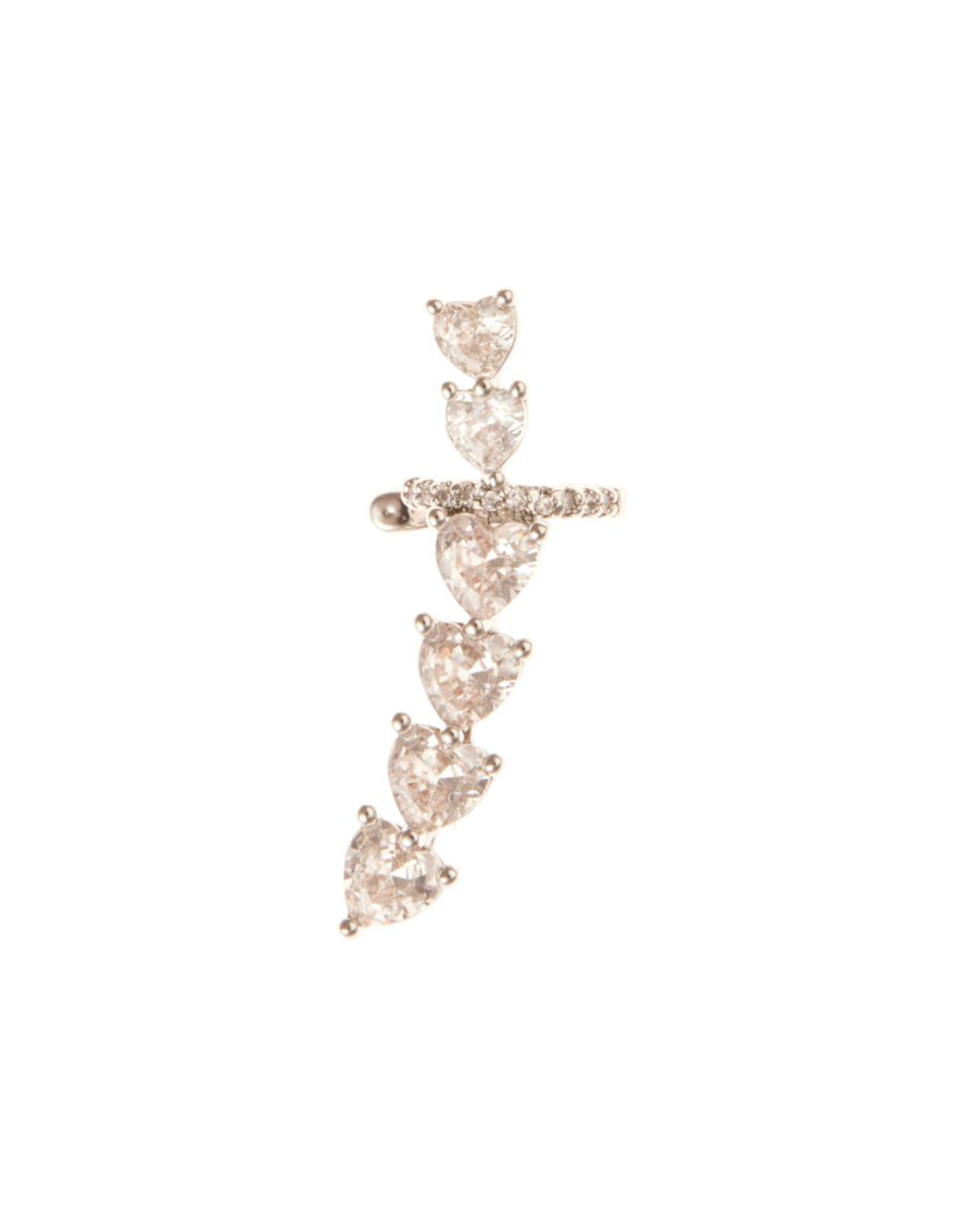 - Clear gemstone floral crawler with post stud and ring arch for ear support
