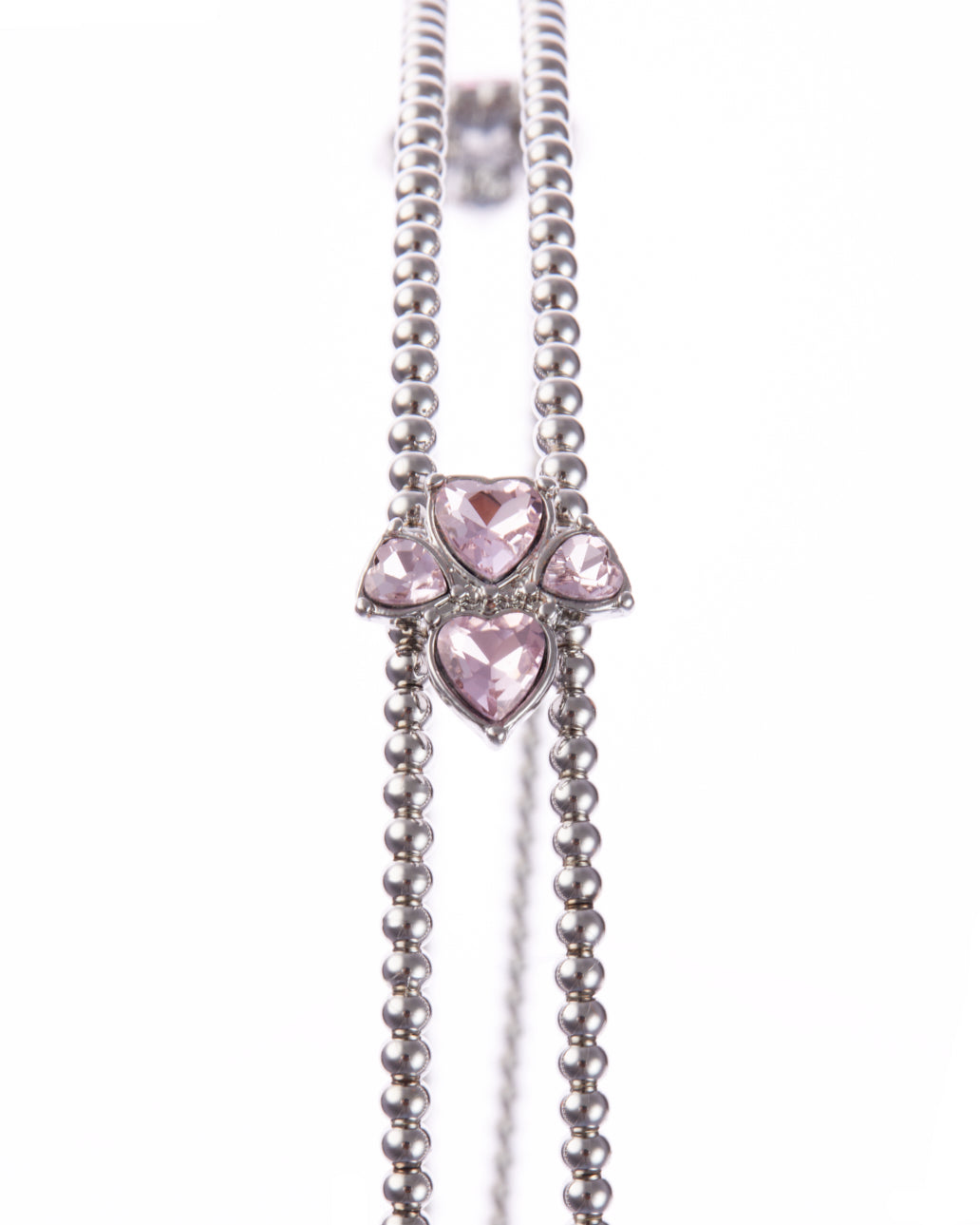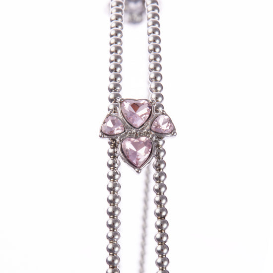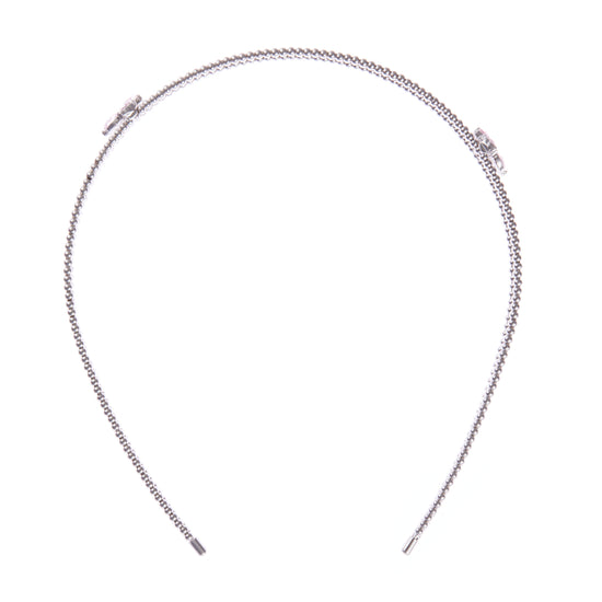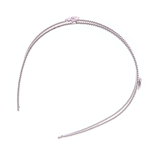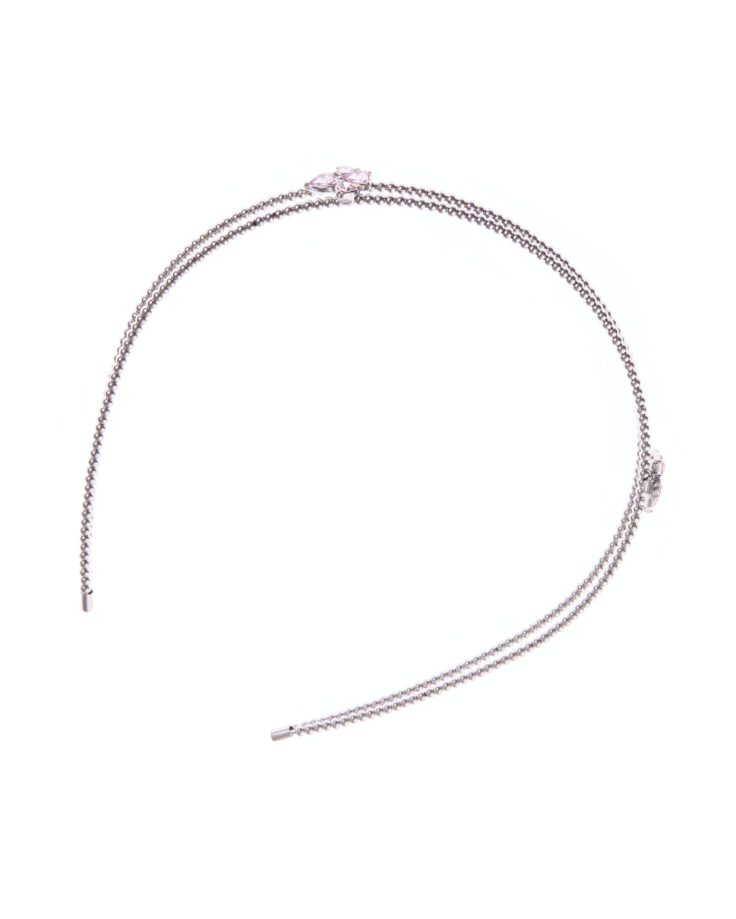 - Metal headband adorned with pink gemstone blossoms