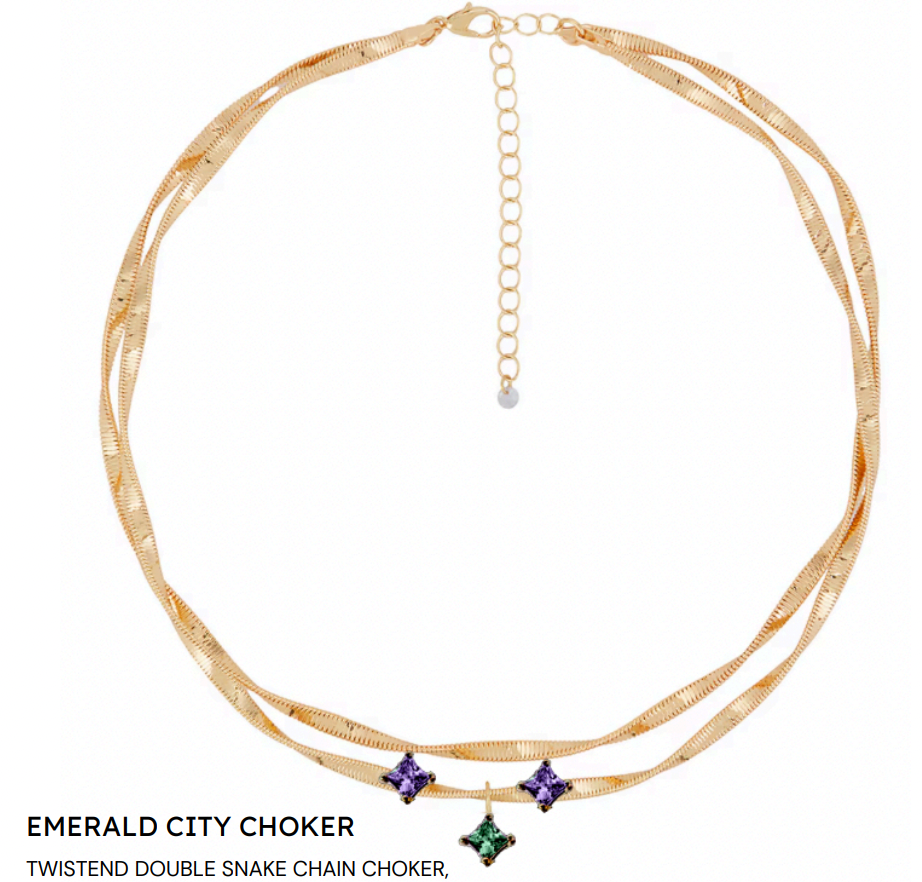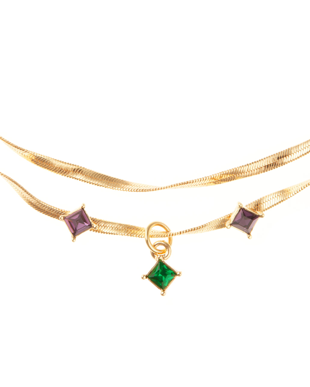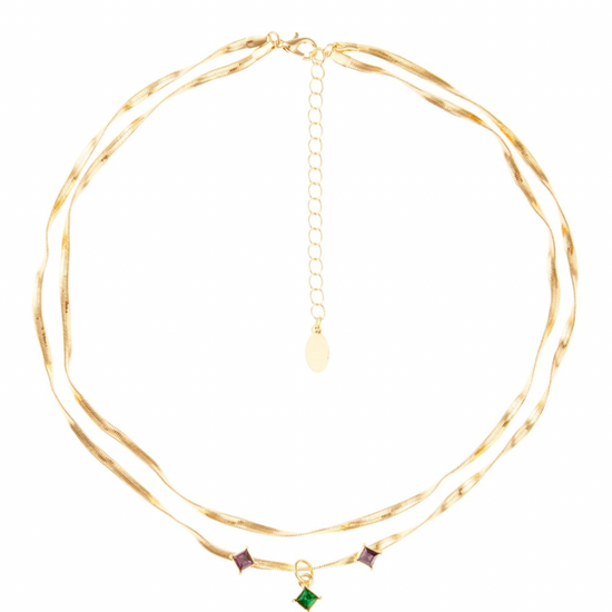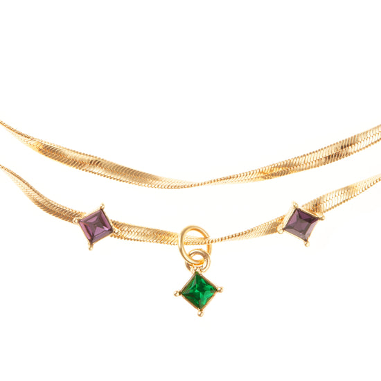 - Twisted double snake chain with multi-colored crystal centerpiece