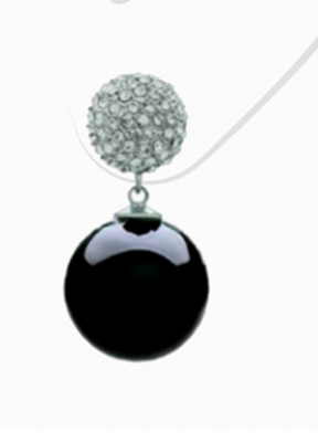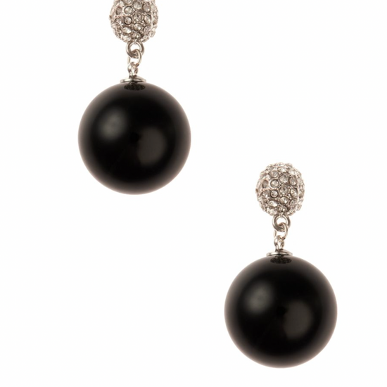 - Glossy onyx sphere earring with emerald accent