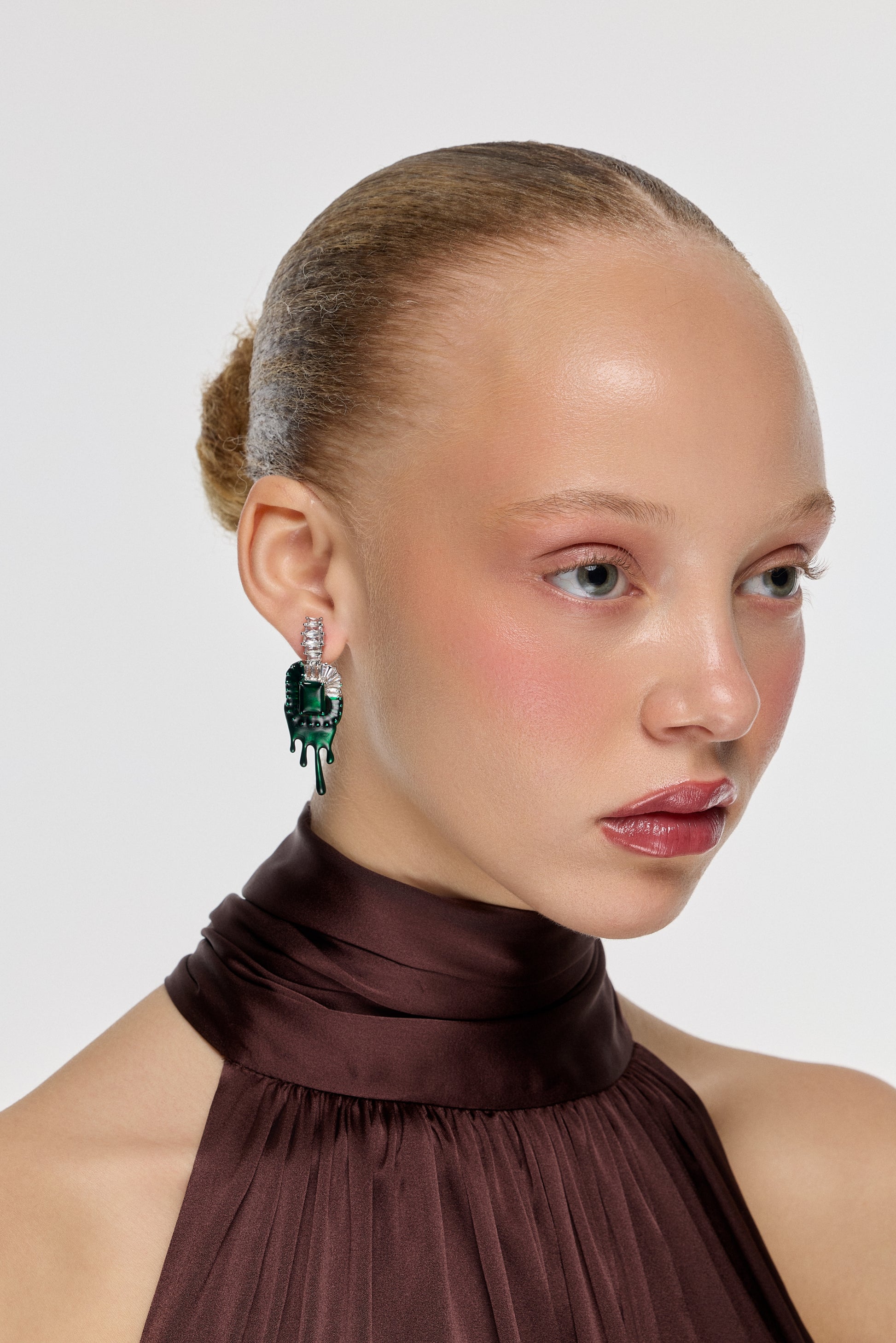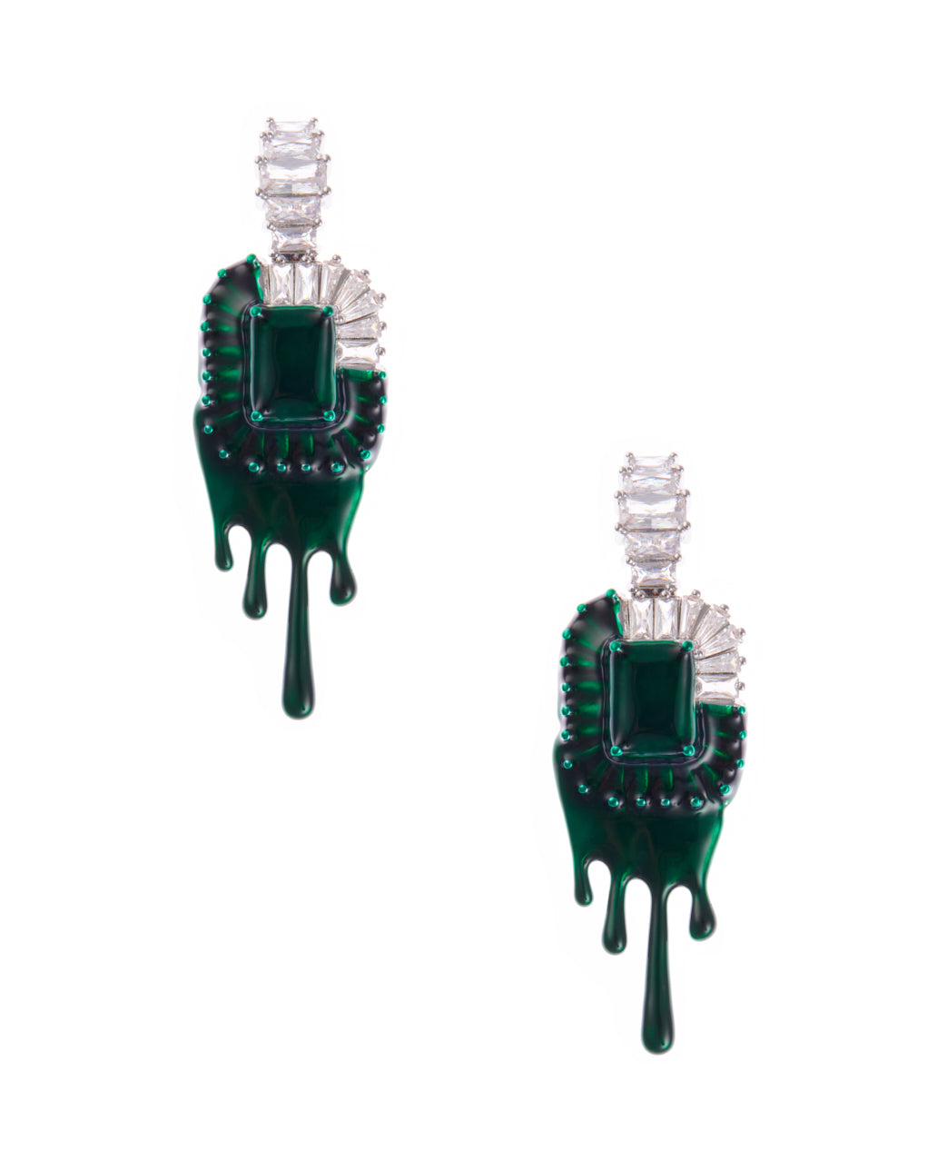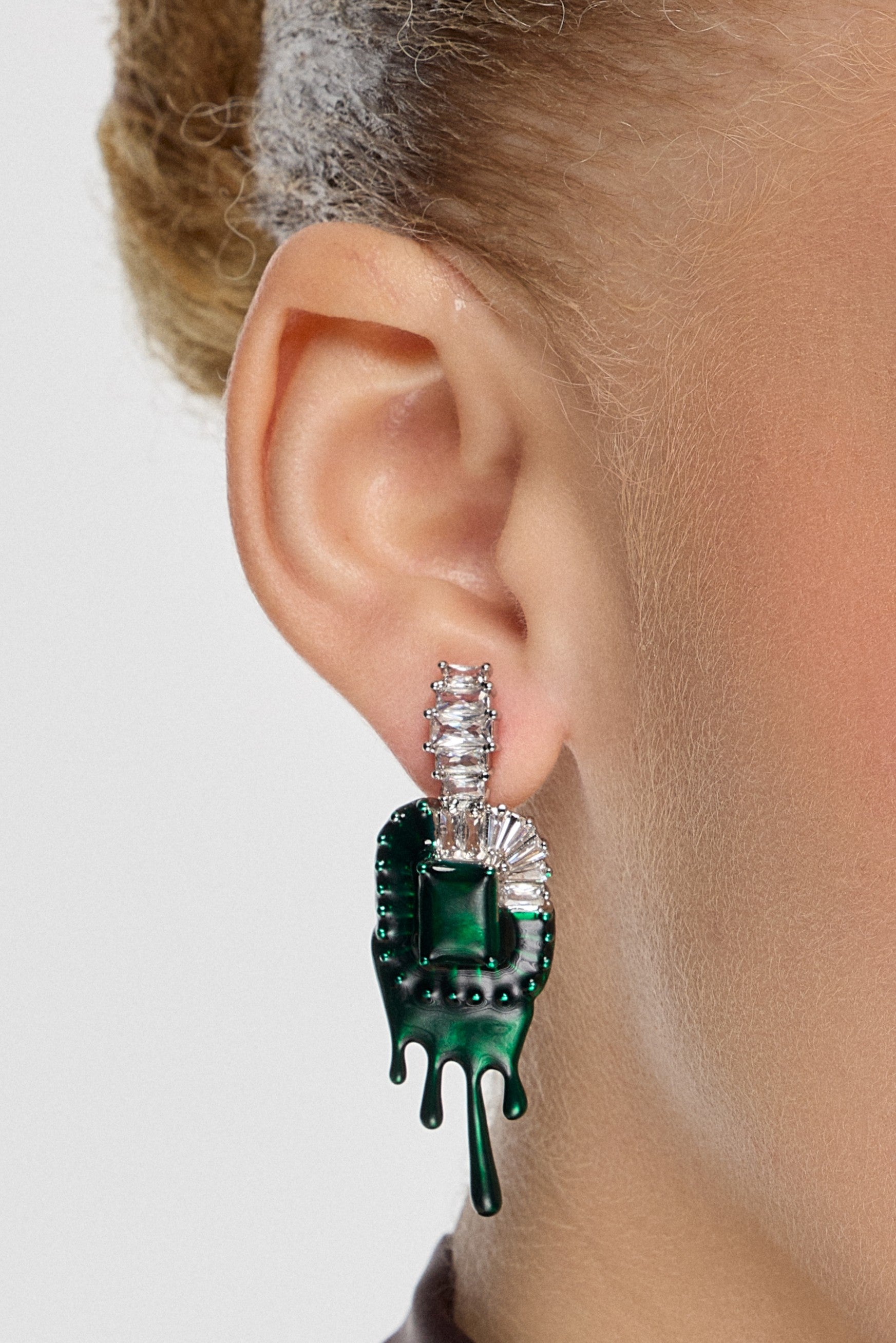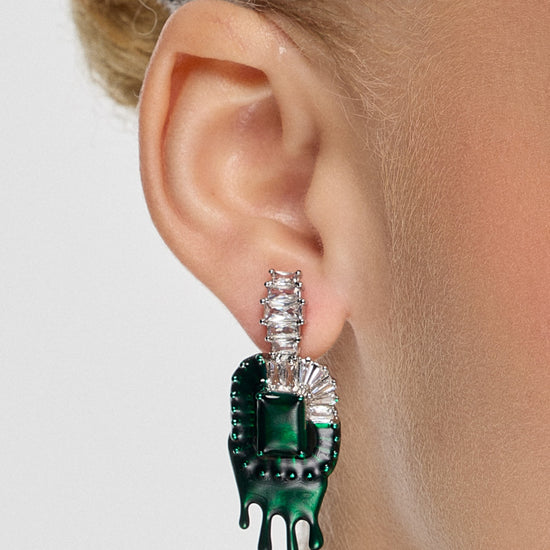 Earring length is measured from top to bottom, including the clasp the jewels may be hanging off of. The width is then measured at the widest point of our earrings.