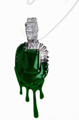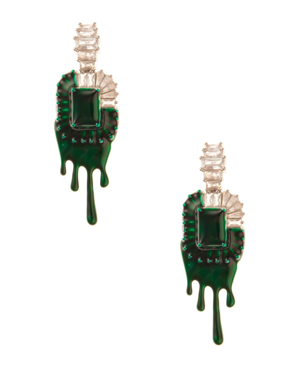 - Emerald teardrop encased in dripping resin-style frame