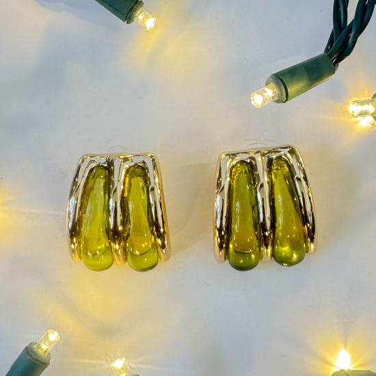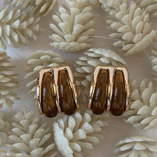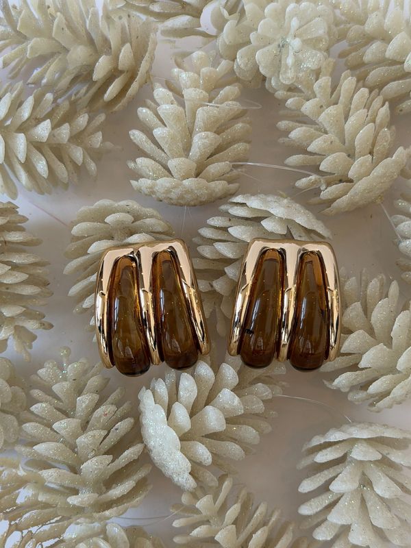 - Gold tone stud earring with resin