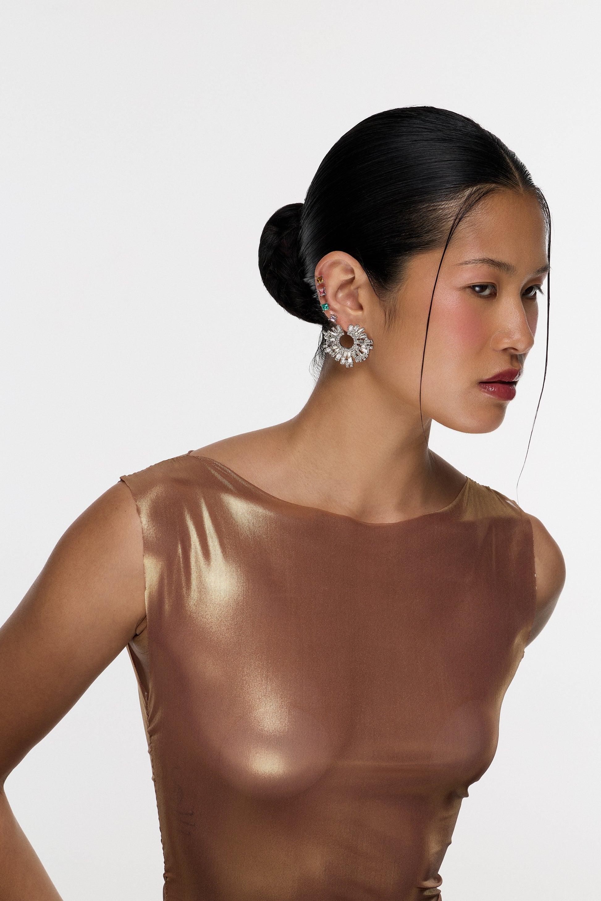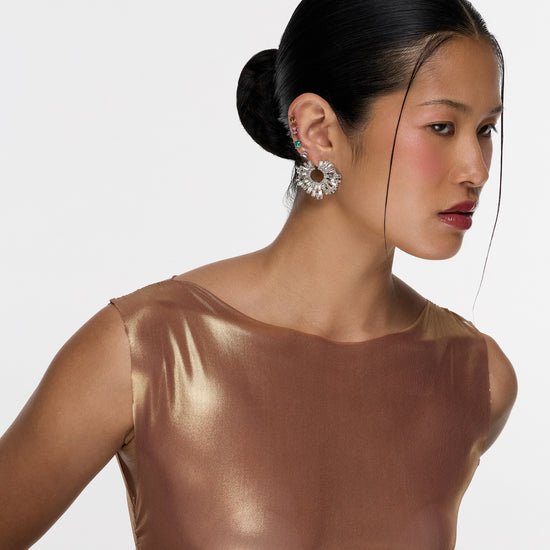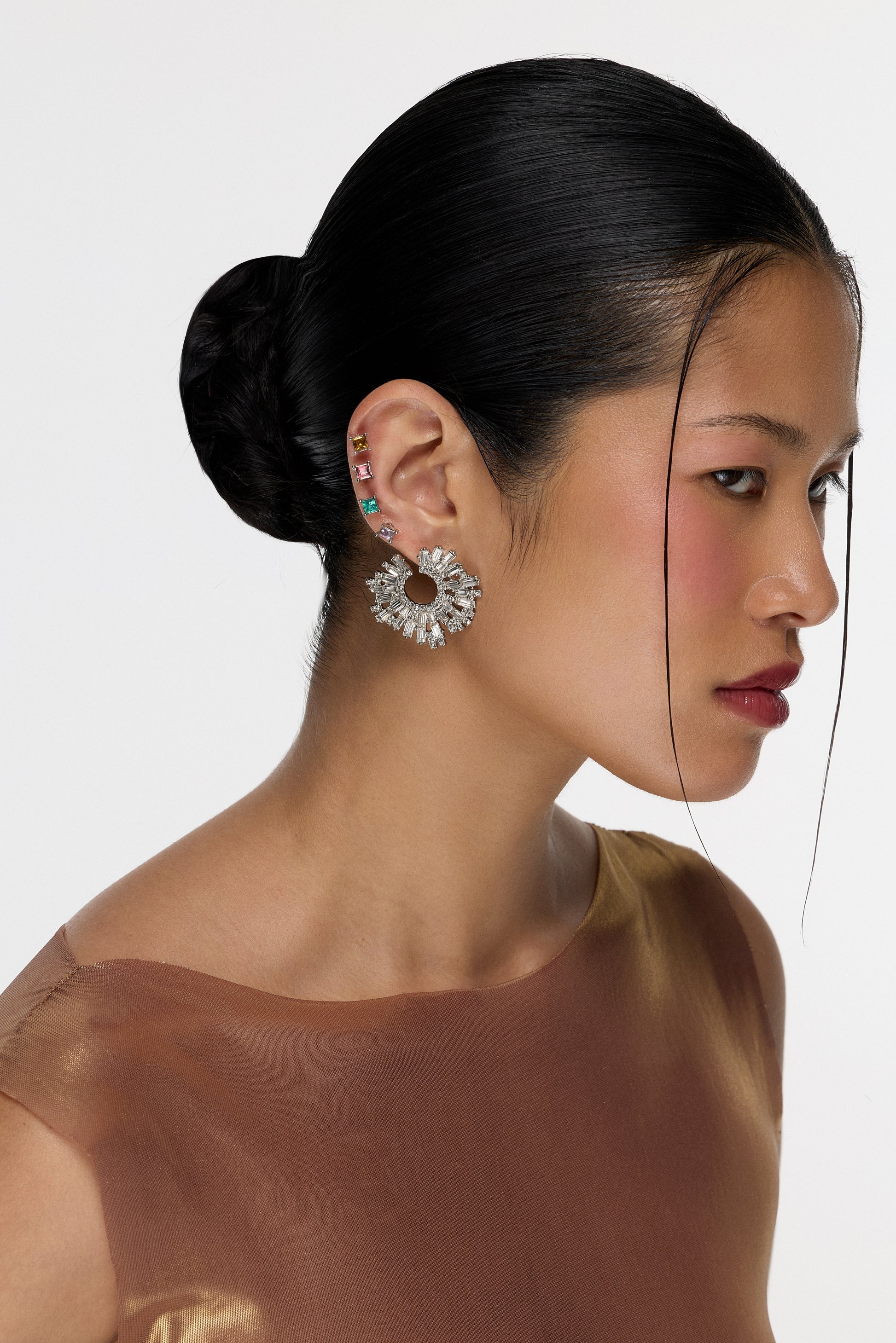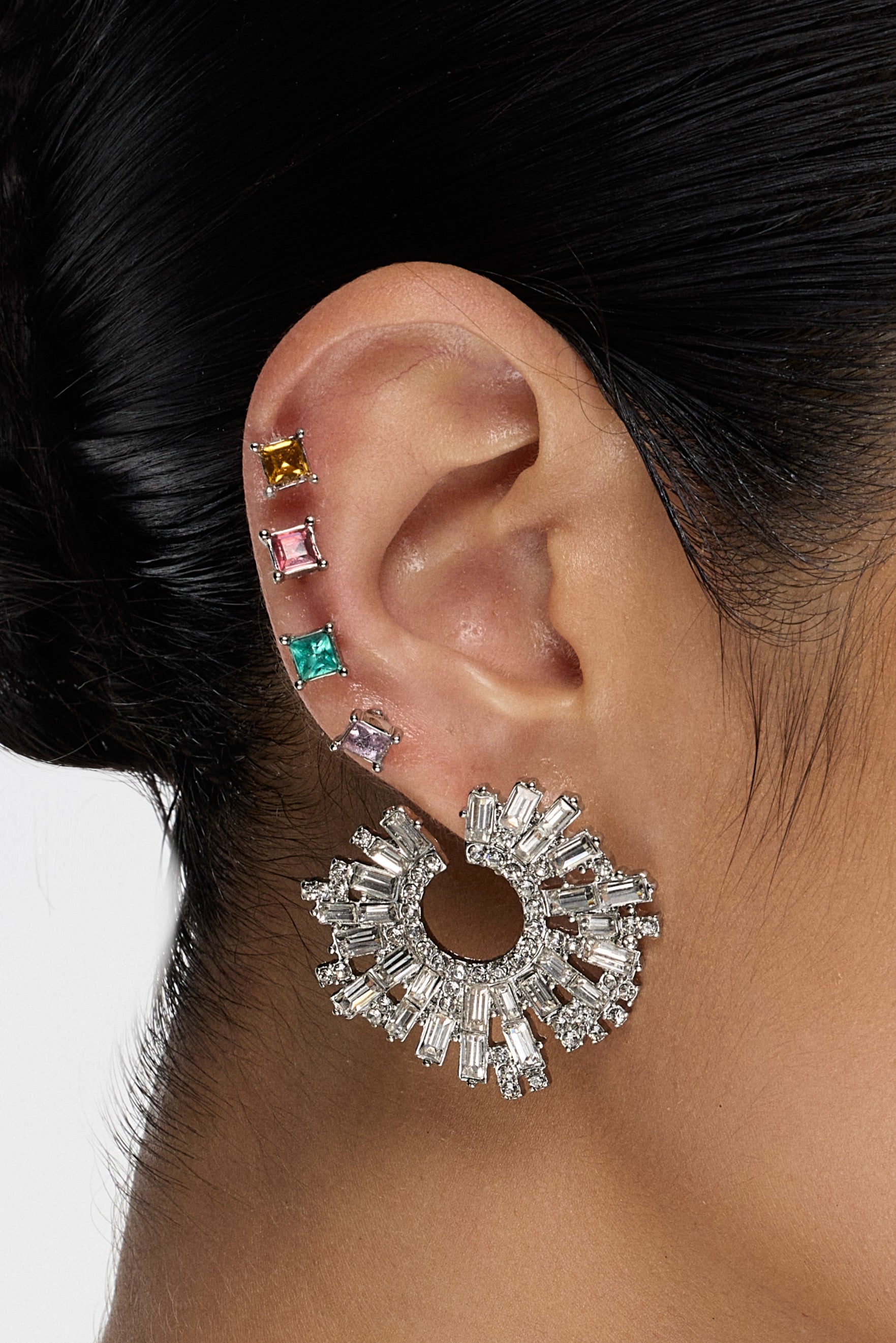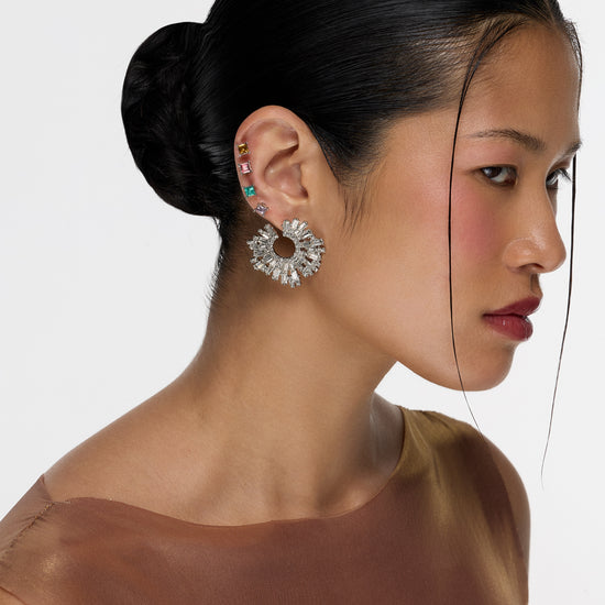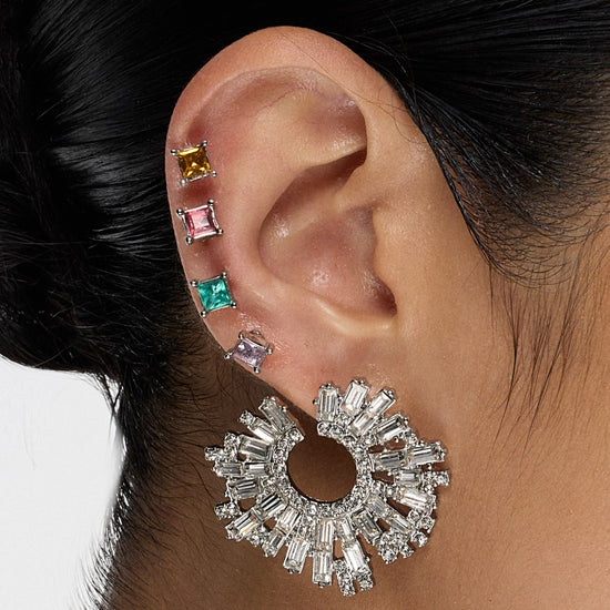 - Crystalline statement stud with 4 multi-colored crawler earring
