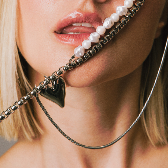 - Heart pendant necklace with chain & pearl detailing