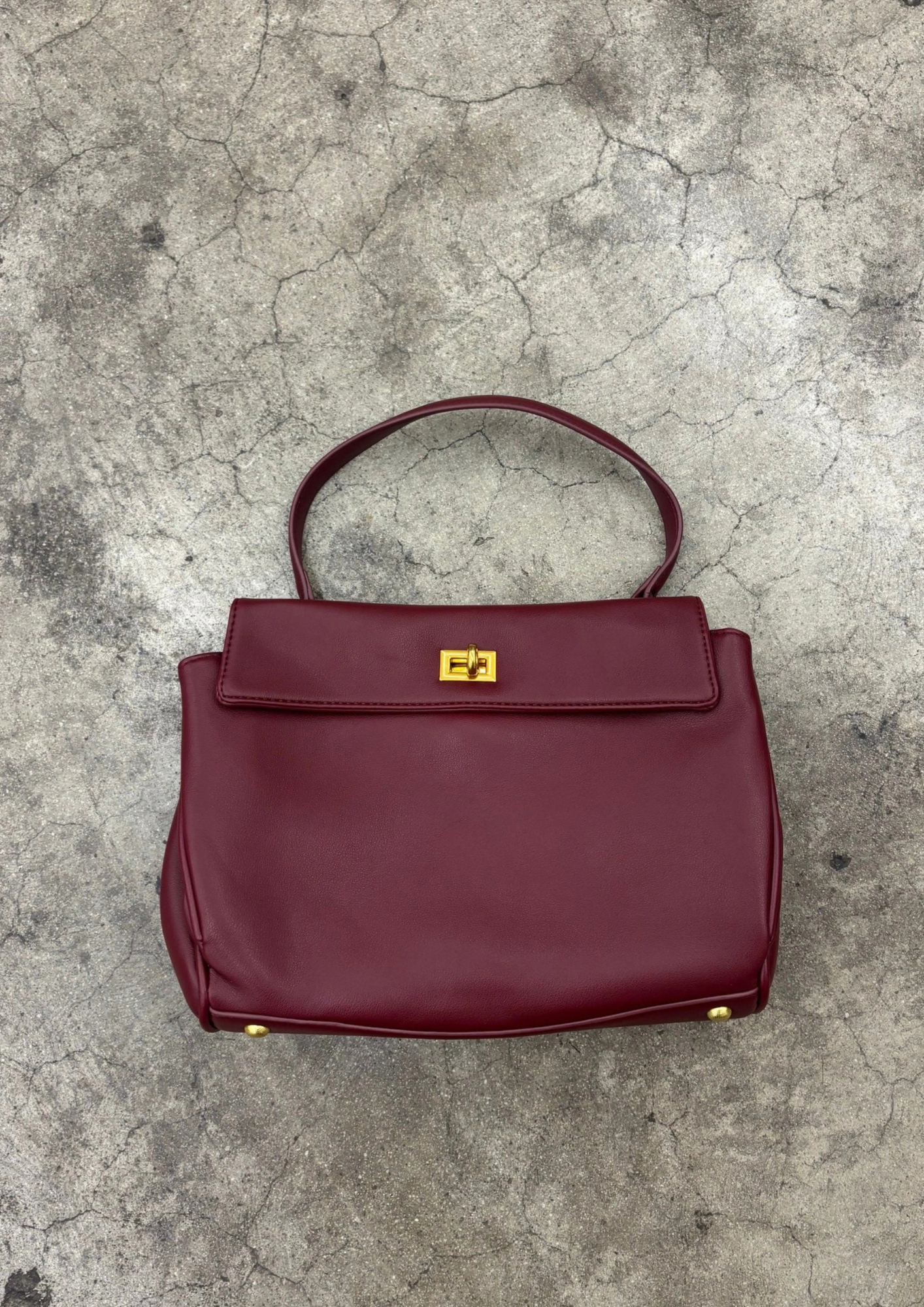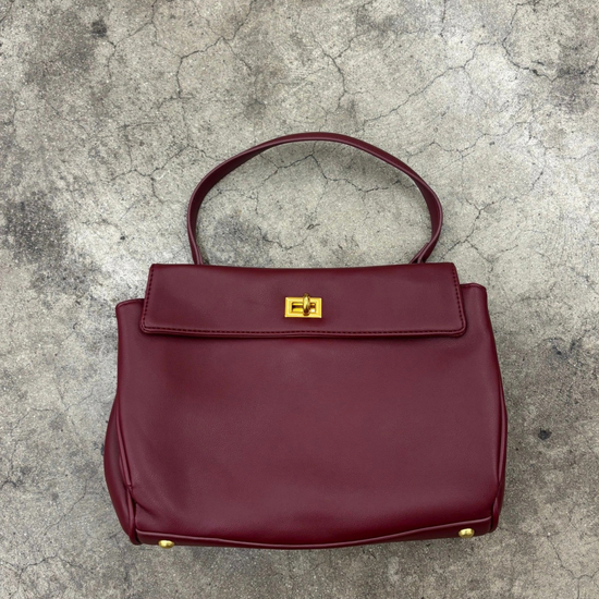 - Foldover fold top with gold tone turn-lock closure
