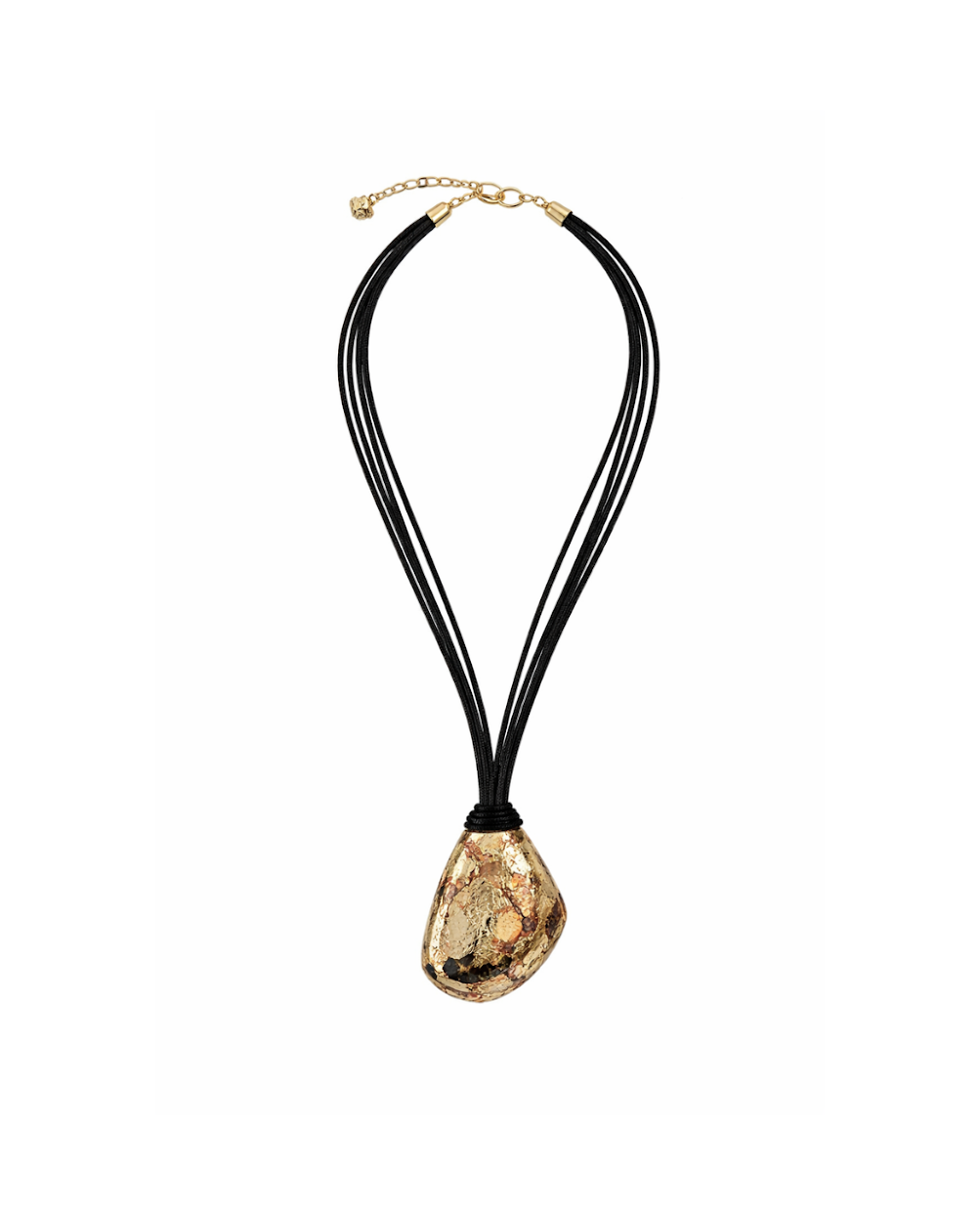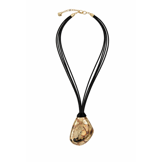 - Cord necklace with gold textured pendant