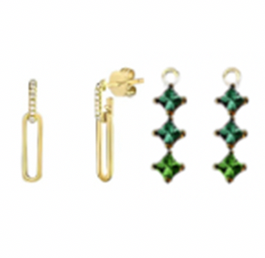 OBLONG MINI HOOP WITH EMERALD CHARMS