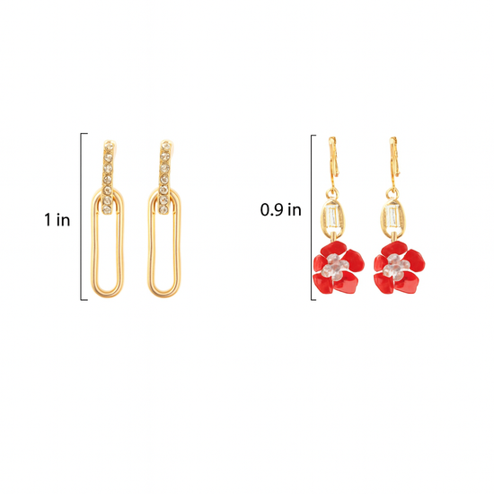 Earring length is measured from top to bottom, including the clasp the jewels may be hanging off of. The width is then measured at the widest point of our earrings.